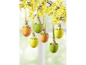 Ostereihänger aus Holz im 6er-Set, Orange-Gelb-Grün