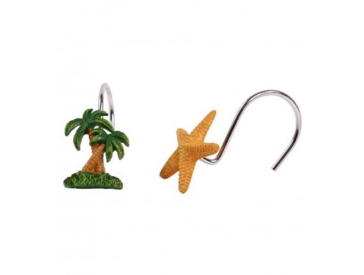 Die 12 Duschvorhangringe Karibik bringen ein Stück Urlaubsfeeling in dein Badezimmer. Hergestellt aus hochwertigem Kunststoff und ausgestattet mit rostfreien Edelstahlhaken, bieten diese Ringe nicht nur eine ansprechende Optik, sondern auch eine langlebige Nutzung. Die Kombination aus 6 Duschvorhangringen in Form von Palmen und 6 Ringen in Form von Seesternen sorgt für eine fröhliche und maritime Atmosphäre.Die Maße der Palmenringe betragen Breite: 3,0 cm und Höhe: 4,0 cm, während die Seesternringe mit Breite: 4,0 cm und Höhe: 4,0 cm überzeugen. Alle Ringe verfügen über einen praktischen Haken mit einem Durchmesser von 3,5 cm, der eine einfache Befestigung an jedem Duschvorhang ermöglicht. Diese Duschvorhangringe sind nicht nur funktional, sondern auch ein echter Blickfang, der deinem Badezimmer einen Hauch von Karibik verleiht.Die hochwertige Qualität der Duschvorhangringe garantiert eine einfache Handhabung und eine lange Lebensdauer. Verleihe deinem Badezimmer mit diesen stilvollen Duschvorhangringen einen frischen und einladenden Look.