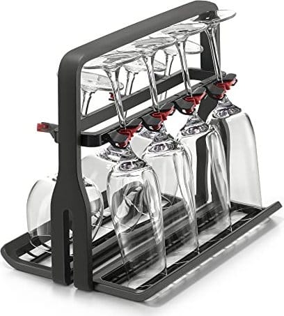 Stelle deine Kristallweingläser gerne in die Spülmaschine, im AEG Weinglashalter A9SZGB01 kannst du dir sicher sein, dass sie wieder schön herauskommen. Der Korb ist höhenverstellbar und passt in jede Spülmaschine. Dadurch passen sowohl Gläser mit kurzem Stiel als auch Weingläser mit längerem Stiel von 24 cm. Je nach Durchmesser der Weingläser finden bis zu 8 Gläser gleichzeitig Platz. Und hast du mal keine Gläser zum Spülen? Dann klappst du das Reck einfach zusammen und verstaust es. Der AEG Glass Rack passt in Geschirrspüler mit einer Breite von 60 und 45 Zentimetern.
