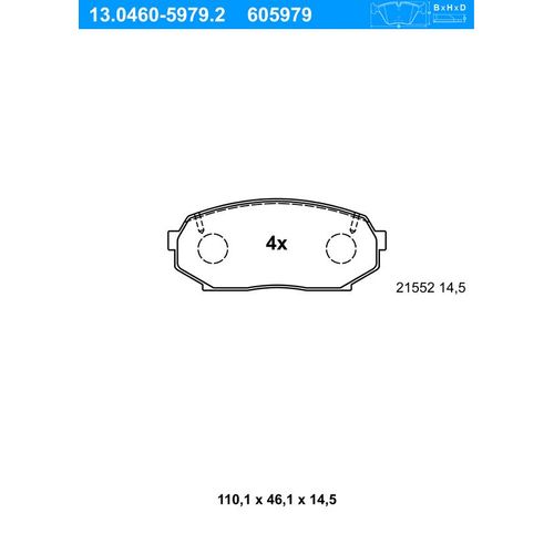 ATE Bremsbelagsatz, Scheibenbremse OE:REMSA:0338.10HERTH+BUSS JAKOPARTS:J3603037FEBI BILSTEIN:16496BOSCH:0 986 424 303REMSA:0338.12NIPPARTS:J3603037ICER:181099ICER:181099-396JURID:572223JBREMBO:P49017NHELLA PAGID:8DB 355 016-821ROADHOUSE:2338.10FTE:BL1495A1ROADHOUSE:2338.12QUINTON HAZELL:BP809VALEO:598960PAGID:T3060FERODO:FDB653QUINTON HAZELL:0338.10QUINTON HAZELL:BLF809DELPHI:LP934BREMBO:P 49 017JURID:572224JZIMMERMANN:21552.145.1HELLA:8DB 355 016-821FERODO:FSL653TEXTAR:2155202TRW:GDB1028TEXTAR:21552 144 0 4MINTEX:MDB1413 Prüfzeichen:E9 90R-02A0229/0185 Höhe [mm]:46,1 mm Verschleißwarnkontakt:exkl. Verschleißwarnkontakt Verschleißwarnkontakt:nicht für Verschleißwarnanzeiger vorbereitet Breite [mm]:110,1 mm MAPP-Code vorhanden Dicke/Stärke [mm]:14,5 mmMenge 1 entspricht einem Satz (4 Bremsbeläge für links UND rechts) , u.a. für Mazda Mx-5 I (NA), 1597 cm³, 115 PS (85 kW), 5/1990 bis 1/1994, KBA-Nr: 7118417