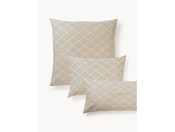 Baumwoll-Kissenbezug Milano mit grafischem Muster. Der Baumwoll-Kissenbezug mit gemusterter Vorderseite und Rückseite verfügt über einen Knopfverschluss und wurde in Portugal gefertigt.