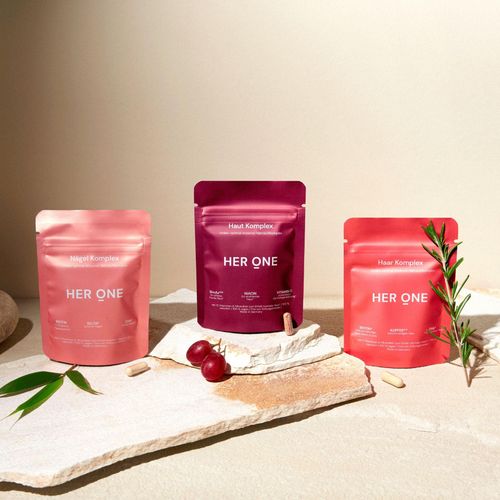 Unser Beauty-Trio ist das ideale Set für deine tägliche Schönheitspflege-Routine von innen. Mit unserem 14in1 Haut Komplex mit SkinAx²™, 12in1 Nägel Komplex mit 70 % Kieselsäure und 15in1 Haar Komplex mit dem ultimativen Hair Blend bekommst du alle essentiellen Nährstoffe, die du für eine strahlende Schönheit benötigst, in nur einem Set. Verwende es als Teil deiner täglichen Routine und erlebe das neue Beauty-Gefühl. Bestelle jetzt und spüre den Unterschied natürlicher Schönheit von innen!. + 150mg SkinAx²™ in Haut Komplex: Eine klinisch getestete, preisgekrönte Formel mit hochwirksamen natürlichen Antioxidantien (OPC) aus französischem Traubenkernextrakt und Melonenkonzentrat, sowie die wichtigsten Nährstoffe Vitamin C und Zink kombiniert.. + Einzigartiger Hair Blend in Haar Komplex:. Hirsesamen-Öl, Glutenfreies Weizen-Extrakt, Sonnenblumenkern-Öl, Rosmarinblatt-Extrakt + Biotin. + Natürliches Silizium in Nägel Komplex (auch als Kieselsäure bekannt) aus Bambussprossenextrakt. Das lebenswichtige Spurenelement dient als Baustein sämtlicher menschlicher Organismen. Es findet sich in Knochen, Knorpeln und Bindegwebe wieder.. + Alle 12 essentiellen Beauty Vitamine und Mineralien stammen aus natürlichem Buchweizenkeimpulver, wie Biotin, Zink und Selen.. Deine ultimativen Nährstoffkomplexe für strahlende Haut¹⁴, für glänzendes, geschmeidiges und voluminöses Haar² und für schöne, starke Nägel³. Optimal dosiert und bioverfügbar durch 100% natürliche Zutaten.
