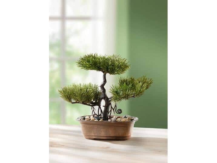 Der fernöstliche Bonsai in Grün-Braun ist eine stilvolle Ergänzung für jedes Zuhause und bringt ein Stück Natur in deine Räume. Dieser kunstvoll gestaltete Bonsai ist nicht nur ein echter Blickfang, sondern auch ideal für alle, die keinen grünen Daumen haben. Dank seiner hochwertigen Verarbeitung aus Kunstmaterial bleibt er das ganze Jahr über in voller Pracht und benötigt keinerlei Pflege.Der Bonsai wird in einem eleganten Topf präsentiert, der mit kleinen Steinchen verziert ist. Diese liebevollen Details verleihen dem Produkt eine authentische Note und machen es zu einem perfekten Dekorationsobjekt für verschiedene Einrichtungsstile. Ob im Wohnzimmer, Büro oder auf der Fensterbank – der Bonsai findet überall seinen Platz und sorgt für eine angenehme Atmosphäre.Mit einer Höhe von 25 cm und einer Schalenmaße von B17 x H5,5 x T10 cm passt dieser Bonsai ideal auf Regale, Tische oder Fensterbänke. Er ist auch an schattigeren Orten einsetzbar, ohne dass seine Schönheit leidet. Hol dir mit diesem fernöstlichen Bonsai ein Stück Natur in dein Zuhause und genieße die zeitlose Eleganz, die er ausstrahlt.
