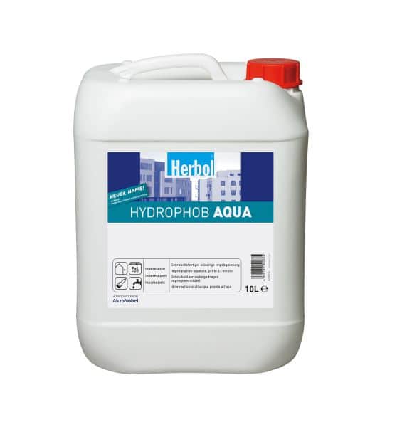 Herbol Hydrophob Aqua – Wasserverdünnbare Imprägnierung auf Siliconharzbasis für saugfähige, mineralische Untergründe “ Herbol Hydrophob Aqua Herbol Hydrophob Aqua ist eine Wasser abweisende Imprägnierung für saugfähige, mineralische Untergründe, vornehmlich auf Sichtmauerwerk. Die farblos auftrockende Imprägnierung dringt tief in den Untergrund ein, den sie optisch nicht verändert. Eigenschaften: Hervorragend Wasser abweisend durch ausgewogene Hydrophobie Feuchteschutz gegen Schlagregen Wasserdampfdurchlässig Anwendungsbereich: Außen Technische Daten: Verbrauch: ca. 200-1000ml/m² pro Beschichtung Farbton: Milchig weiß, nach Trocknung farblos transparent Glanzgrad: Matt Verarbeitung: Streichen, Sprühen und fluten. Satt tränkend auftragen. Trockenzeit: Durchgetrocknet nach 2-3 Tagen. Nicht mit anderen Werkstoffen überarbeitbar. Geeignete Untergründe Saugfähige mineralische Untergründe Untergrundbedingungen Der Untergrund muss fest, sauber, tragfähig, trocken und frei von Ausblühungenm, Algen, Moos, Pilzbefall, Mehlkornschichten, Sinterschichten und Trennmitteln sein. Weitere technische Details und Hinweise zur Verarbeitung können Sie dem Produktdatenblatt entnehmen. „