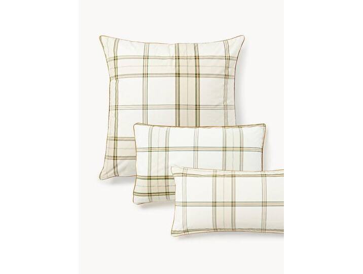 Karierter Baumwollperkal-Kopfkissenbezug Scarlet mit Keder