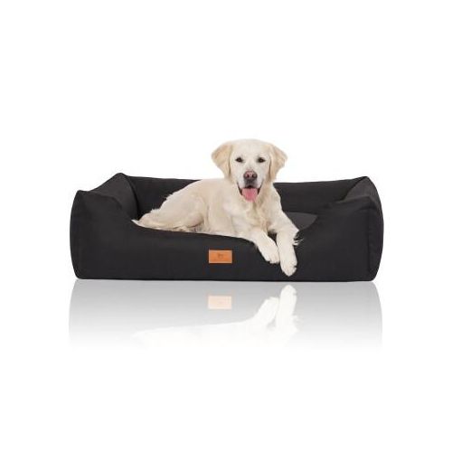 Weiche Polsterung, und hohe Seiten vermitteln Deinem Freund Schutz und Geborgenheit. Das Hundebett ist aus robustem und hochwertigen Velour gefertigt, in der für Knuffelwuff typisch hohen Qualität. Eine lange Lebensdauer ist auch bei lebhaften Hunden gesichert. Der sehr elegante Stoff hat einem schweren, sehr groben Handwebcharakter. Durch die Mélange diverser Garne wird das Hundebett zu einem wahren Eyecatcher Die Polsterung vom Liegekissen liegt bei luxuriösen 16cm. Sie schützt Deinen Hund nicht nur vor dem harten Boden, sie bewahrt ihn auch vor Bodenkälte. Die erhöhten Seitenwände und die Rückwand schützten mit ihren 25cm Höhe zusätzlich vor Zugluft. Bei diesem Hundebett werden, wie auch bei allen anderen Produkten der Marke Knuffelwuff, nur hochwertige Materialien verwendet. Die Bezüge kannst Du mit einem Reißverschluss abnehmen und bei 30 Grad in der Waschmaschine waschen. Noch eins: die Füllung ist anti-allergisch. Außen-/Innenmaße: M-L 85 x 63cm / 50 x 33cm XL 105 x 75cm / 70 x 50cm XXL 120 x 85cm / 85 x 55cm