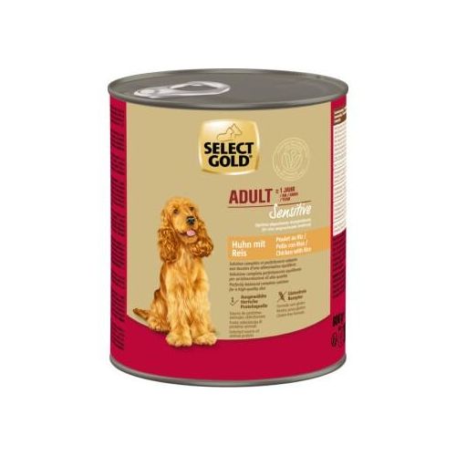 SELECT GOLD Sensitive Nassnahrung ist die Lösung für Hunde, die zu Futtermittelunverträglichkeiten oder sensibler Verdauung neigen. Die hochwertigen Rezepturen zeichnen sich durch wenige, sehr gut verträgliche Zutaten aus und sind zusätzlich abgestimmt auf die jeweilige Lebensphase. Die Vorteile im Überblick: Jede Rezeptur enthält jeweils nur eine hochwertige tierische Proteinquelle (Single Protein) – besonders geeignet für ernährungssensible Hunde. Die Rezeptur enthält nur eine sehr gut verträgliche Kohlenhydratquelle: Kartoffel. Hoher Anteil tierischer Proteine mit bis zu 68%. bei Hirsch: Getreide- und glutenfreie Rezeptur. bei Huhn, Rind & Lamm: Weizen- und glutenfreie Rezeptur Prebiotisch wirkende Fructo-Oligosaccharide (FOS) unterstützen den Aufbau und Erhalt einer stabilen Darmflora. Optimale Nährstoffversorgung durch erlesene Zutaten. Natürliche Omega-3- und Omega-6-Fettsäuren aus Sonnenblumenöl und Rapsöl sowie Biotin könnenzu intakter Haut und schönem Fell beitragen. *Schmeckt nicht? Mit unserer Akzeptanzgarantie bekommst du dein Geld zurück und suchst dir einfach ein anderes Futter aus.