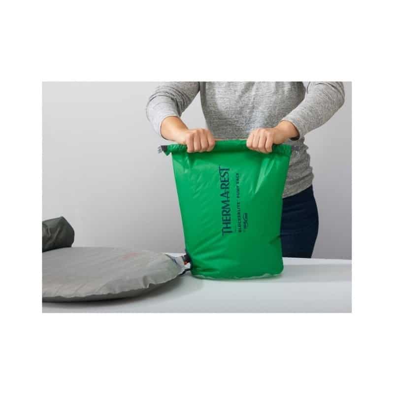 Der BlockerLite™ Pumpsack bringt etwa 20 Liter Volumen mit und ist wasserdicht konstruiert. Seine Öffnung wird einfach auf die überarbeiteten Ventilversionen der Therm-a-Rest Luftmatten geklickt und bleibt so fest an Ort und Stelle.Mit ein wenig Schwung oder lockerem Hineinpusten füllt sich der BlockerLite™ Pumpsack schließlich, sodass du ihn schnell verschließen und die Luft in deine Matte hineindrücken kannst. Auf diese Art und Weise kannst du vor allem deine Wintermatten schonend aufblasen, da kaum oder keine Feuchtigkeit aus der Atemluft hineingelangt, die bei niedrigen Temperaturen für Probleme sorgen könnte. Und damit du den BlockerLite™ Pumpsack nicht nur als Pumpe mitnehmen musst, kannst du ihn dank wasserdichter Bauart und Rollverschluss auch als Packsack für deine Matte oder für andere Ausrüstung verwenden. Alles in allem ein geniales Zubehör für all deine Pumpmatten, das bei keiner Tour fehlen sollte!
